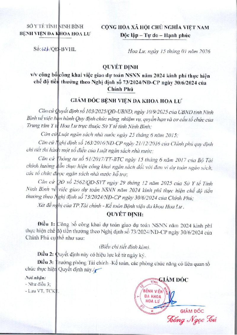 | Số hiệu | 62b/QĐ-BVHL | Cơ quan ban hành | Bệnh viện đa khoa Hoa Lư |